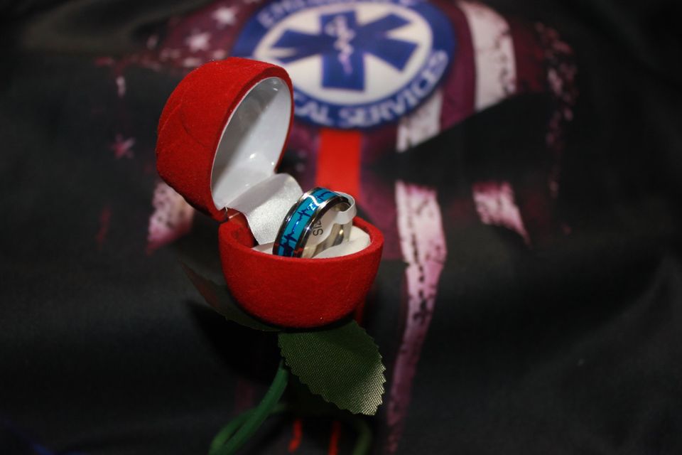 This Ring Is Awesome! It is perfect for medical folks. The ring features a beautiful silver band with a blue inlay, inside the inlay, there is a silver EKG rhythm tracing. In the light, the ring is a beautiful shade of blue, but the best part, it glows in the dark!