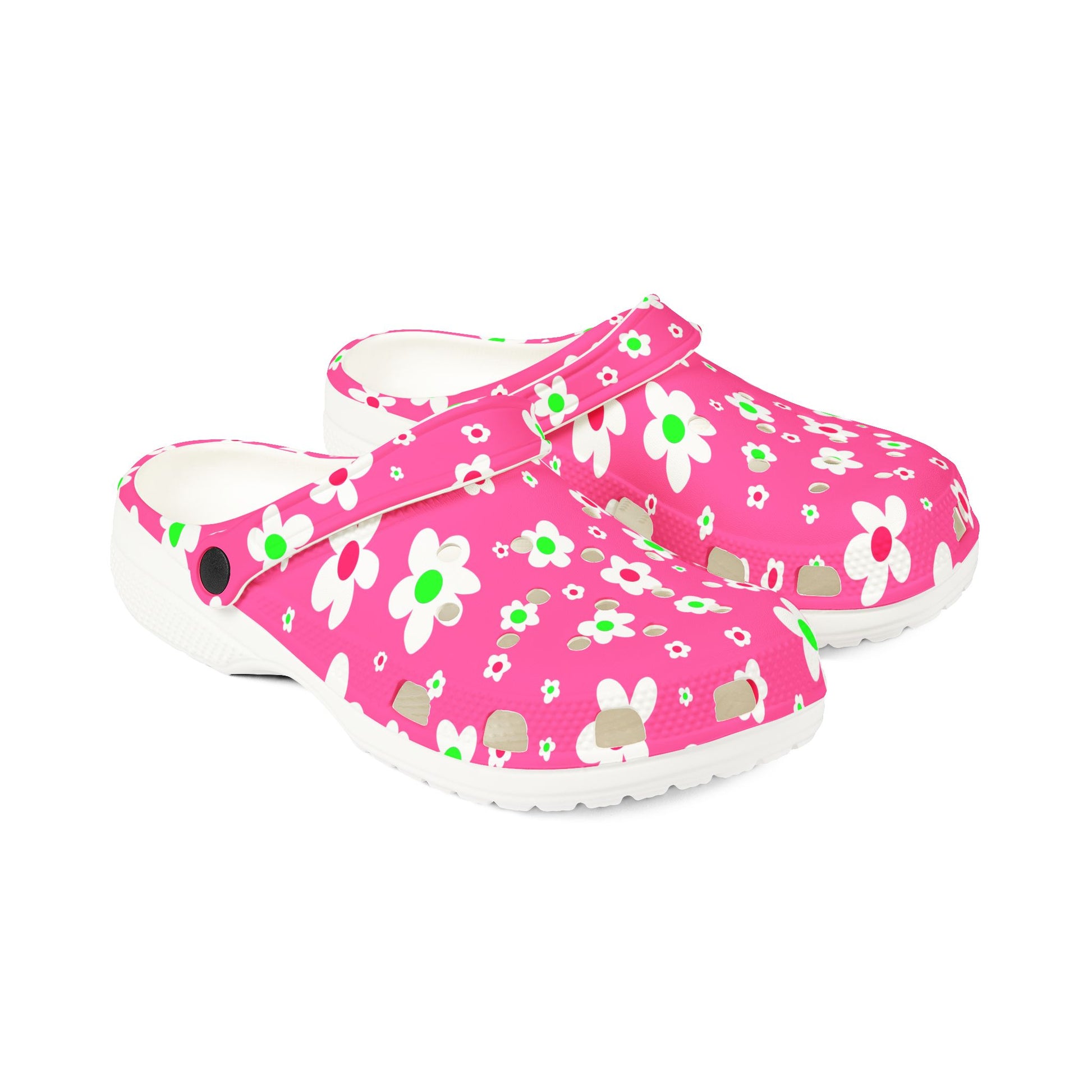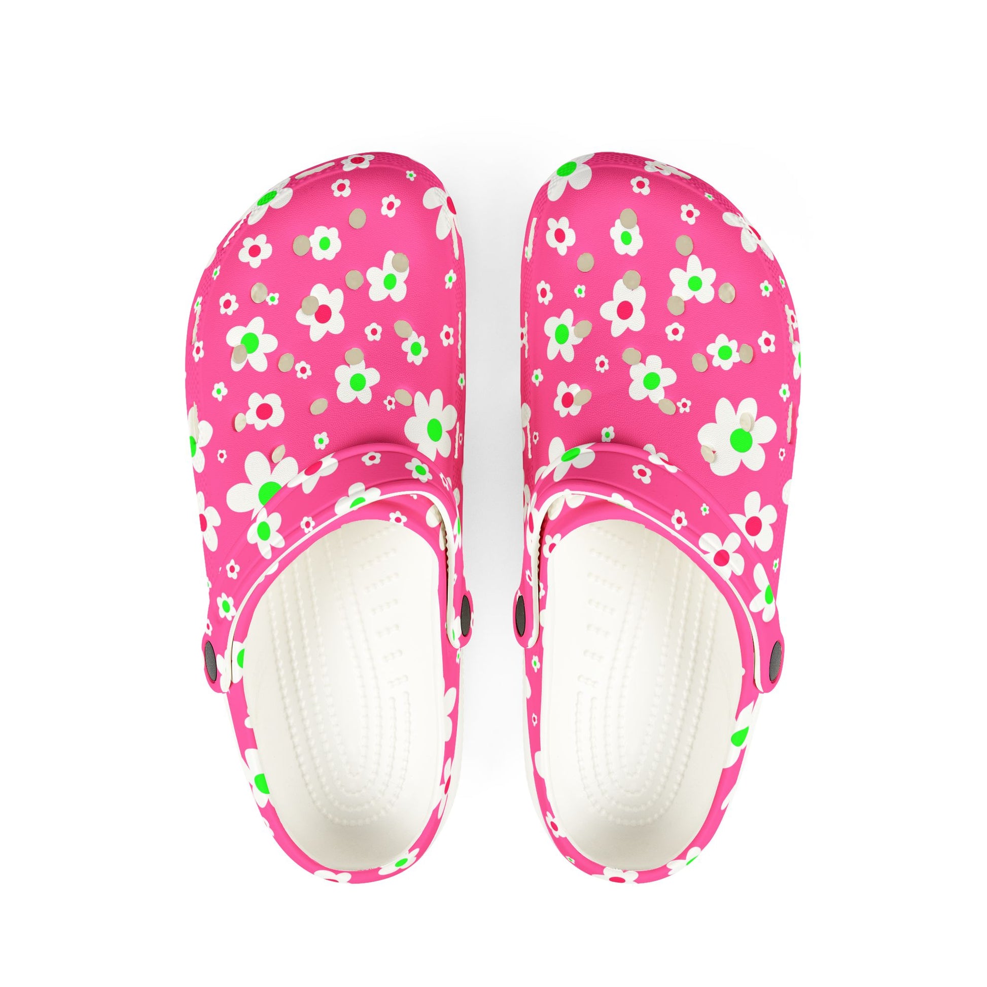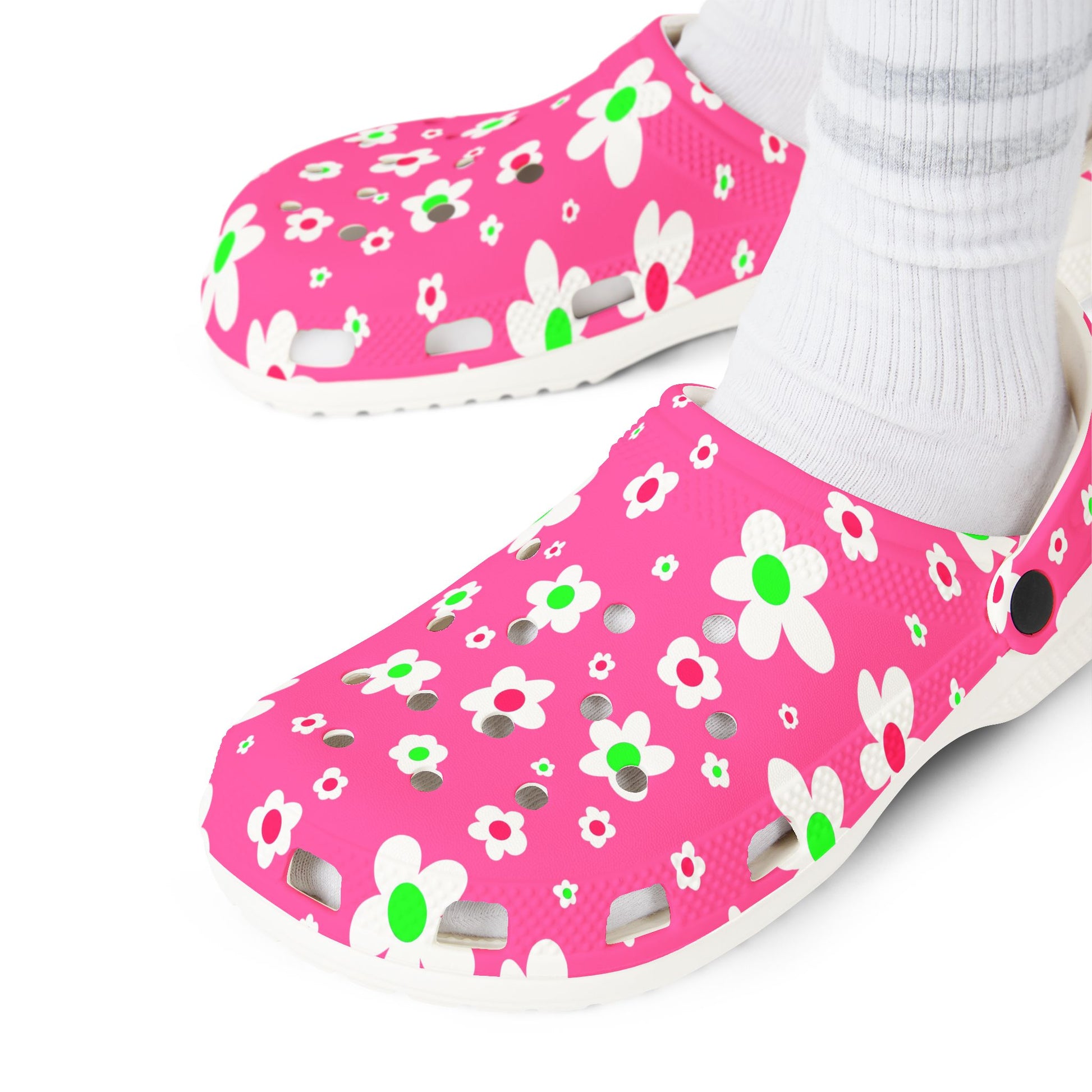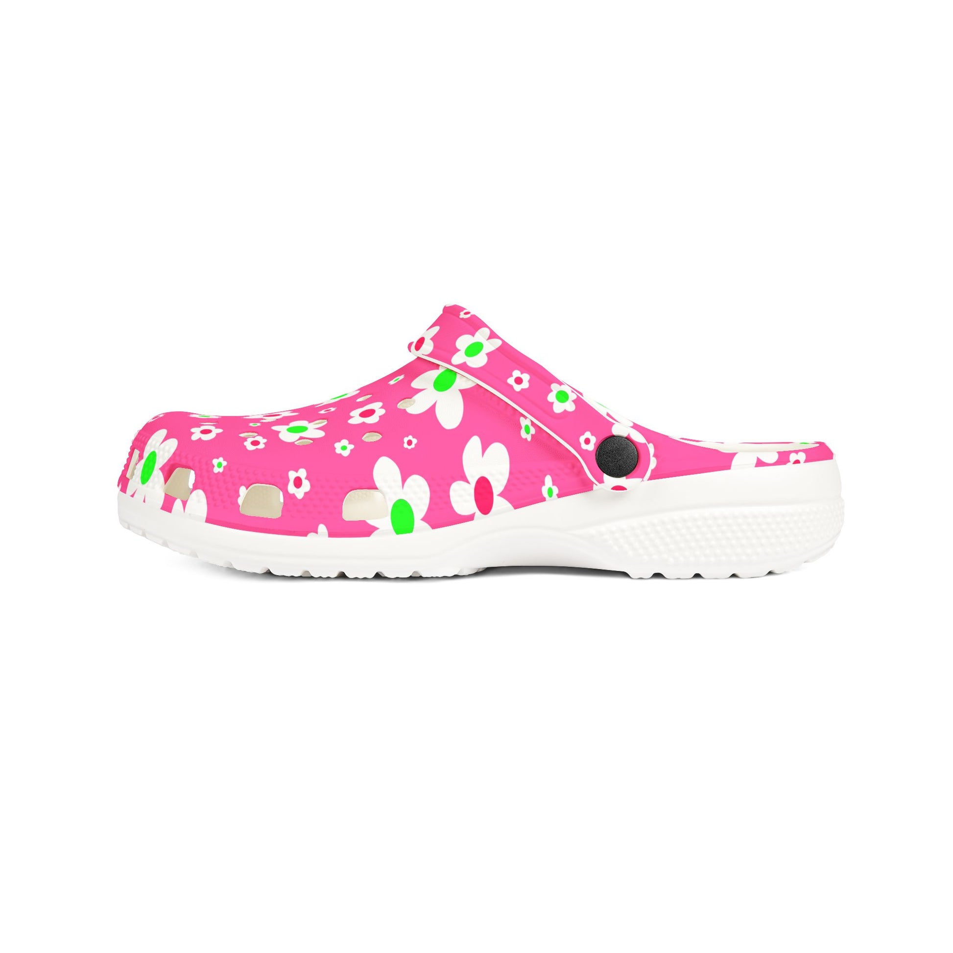 Floral Comfort Clogs - Fun Pink EVA Foam Shoes for Women, Nurse Shoes, Garden Parties, Casual Wear, Summer Fashion, Unique Gift Idea