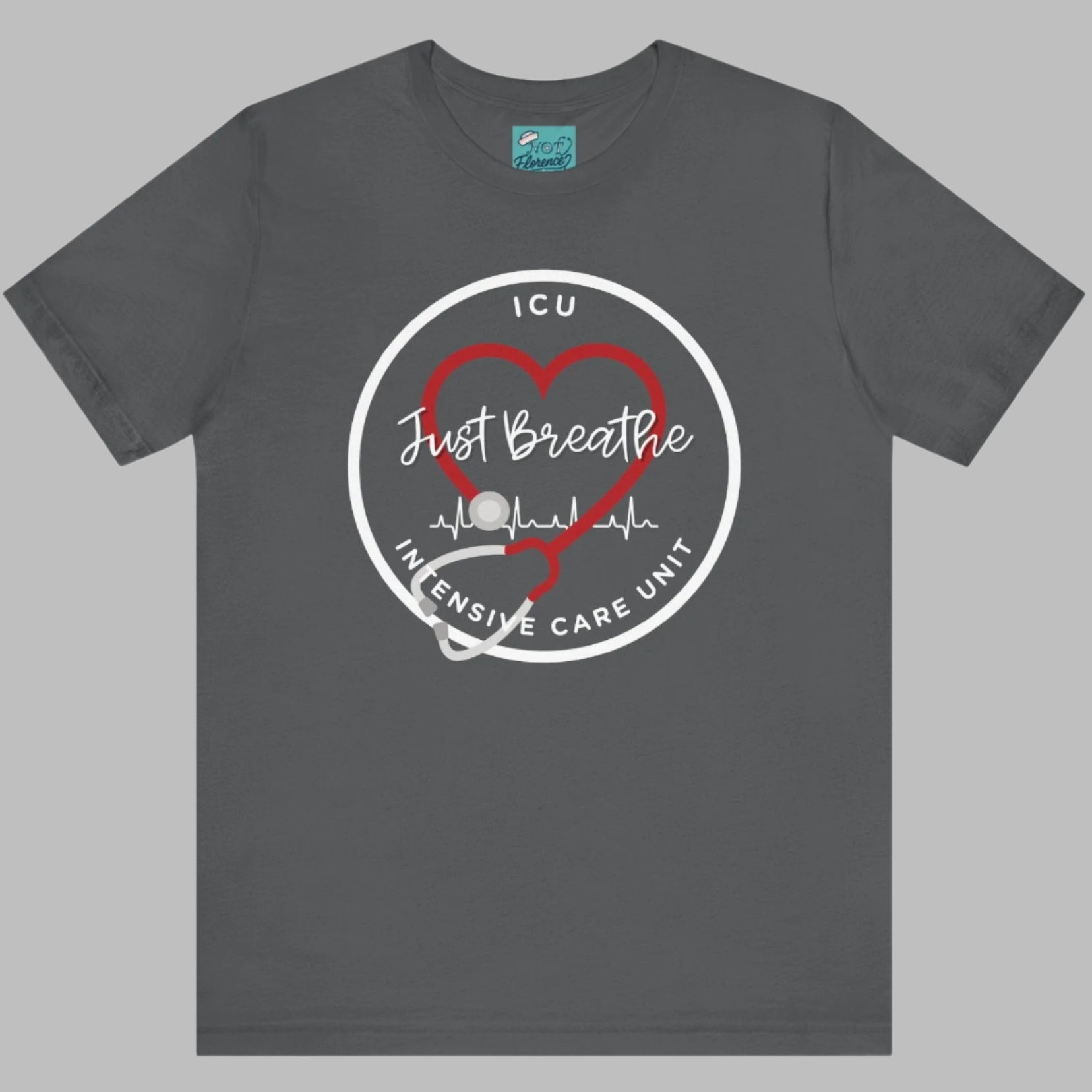 ICU nurse “Just breathe” shirt. Introducing our stylish Unisex Jersey Short Sleeve Tee, perfect for any casual occasion. The soft, breathable fabric offers all-day comfort, making it ideal for lounging or daily adventures. This tee features a unique design that evokes a sense of positivity and resilience, capturing the essence of support and care. It’s a versatile choice for healthcare professionals, teachers, or anyone who appreciates thoughtful style. Great for holidays like Nurses Week, Nurse Appreciation Day or as a gift for birthdays and celebrations. Wear it to show your passion and dedication during any event! Product features - Made with 100% Airlume combed and ring-spun cotton for a lightweight feel. - Ribbed knit collar provides elasticity and retains its shape. - Shoulder tape stabilizes the garment and prevents stretching. - Vibrant sleeve printing techniques ensure crisp, detailed designs. - Tear-away label minimizes skin irritations for added comfort. Care instructions - Machine wash: cold (max 30C or 90F) - Non-chlorine: bleach as needed - Tumble dry: low heat - Iron, steam or dry: medium heat - Do not dryclean