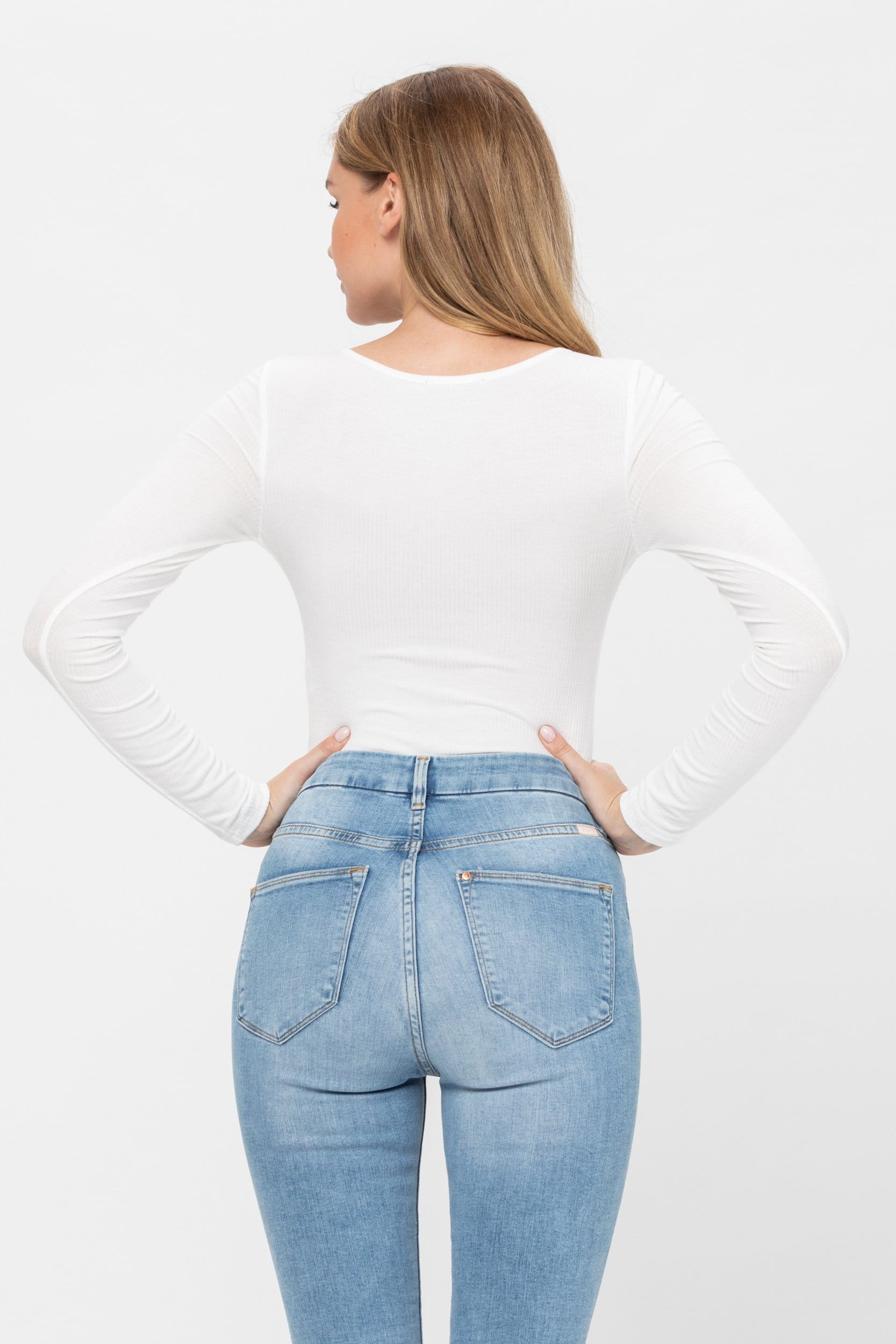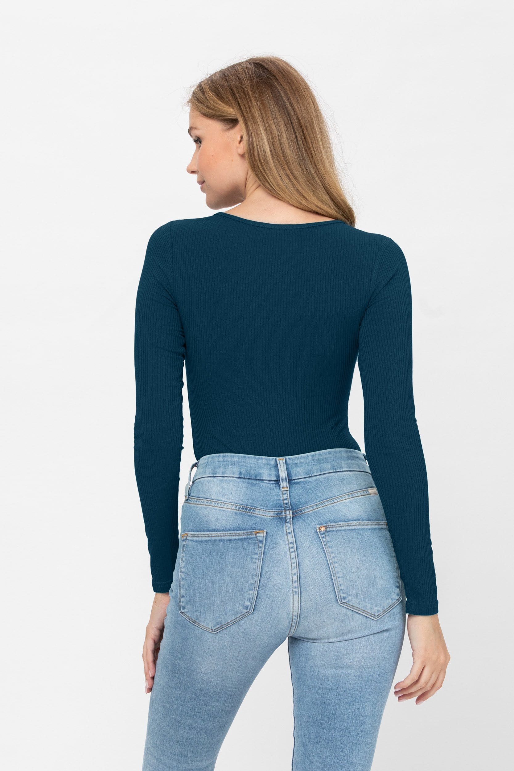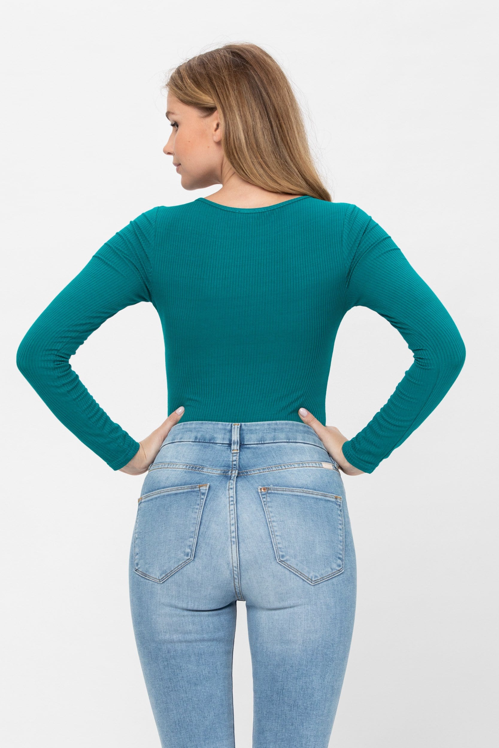 Long Sleeve Sexy Scoop Neck Tank Top Button Down Ribbed Bodysuits