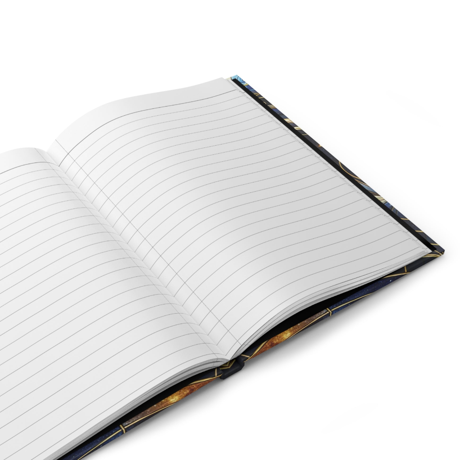 A hardcover journal featuring a swirling night sky design, giving off a mysterious and dreamy vibe. Perfect for writers, poets, and dreamers. Ideal for journaling, note-taking, and sketching under the stars. Relevant for birthdays, graduations, and back-to-school season.